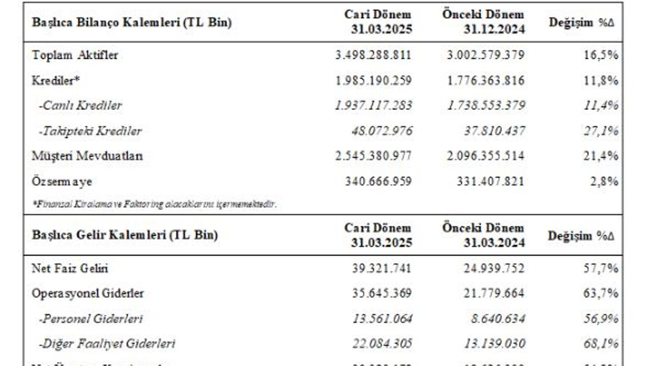 “2025 yılına dengeli bir makroekonomik görünümle başladık ancak mart ayında, içeride ve dışarıda yaşadığımız gelişmelerin etkisiyle volatilitenin arttığını gözlemliyoruz. Bu noktada Merkez Bankası’nın zamanlı ve sıkı duruşunun desteğiyle önümüzdeki dönemde görünümün yeniden dengeye oturacağını düşünüyoruz. Yılın ilk çeyreğinde enflasyondaki düşüş, iç talepteki canlılık ve finansal istikrarı destekleyen politikalar, sektörümüz için olumlu bir zemin oluşturdu. Biz de bu dönemde, güçlü finansal yapımız ve müşteri odaklı yaklaşımımızla başarılı bir performans sergiledik. Güçlü başlayan birinci çeyrekle beraber sermaye yapımız ve çevik bilanço yönetimimiz, önümüzdeki belirsizliği, daha önceki dönemlerde pek çok kez gösterdiğimiz gibi başarıyla yönetmemizi sağlayacak. Türk lirası kredilerde tüketici ve küçük işletme kredilerinde özel bankalar arasında pazar payı kazanıp, güçlü konumumuzu pekiştirdik. Hem TL hem YP müşteri mevduatlarında bir puanın üzerinde pazar payı kazandık. Bu performans, müşteri deneyimi odağımız, ilişki bankacılığındaki ve dijitaldeki gücümüzün bir yansıması.”