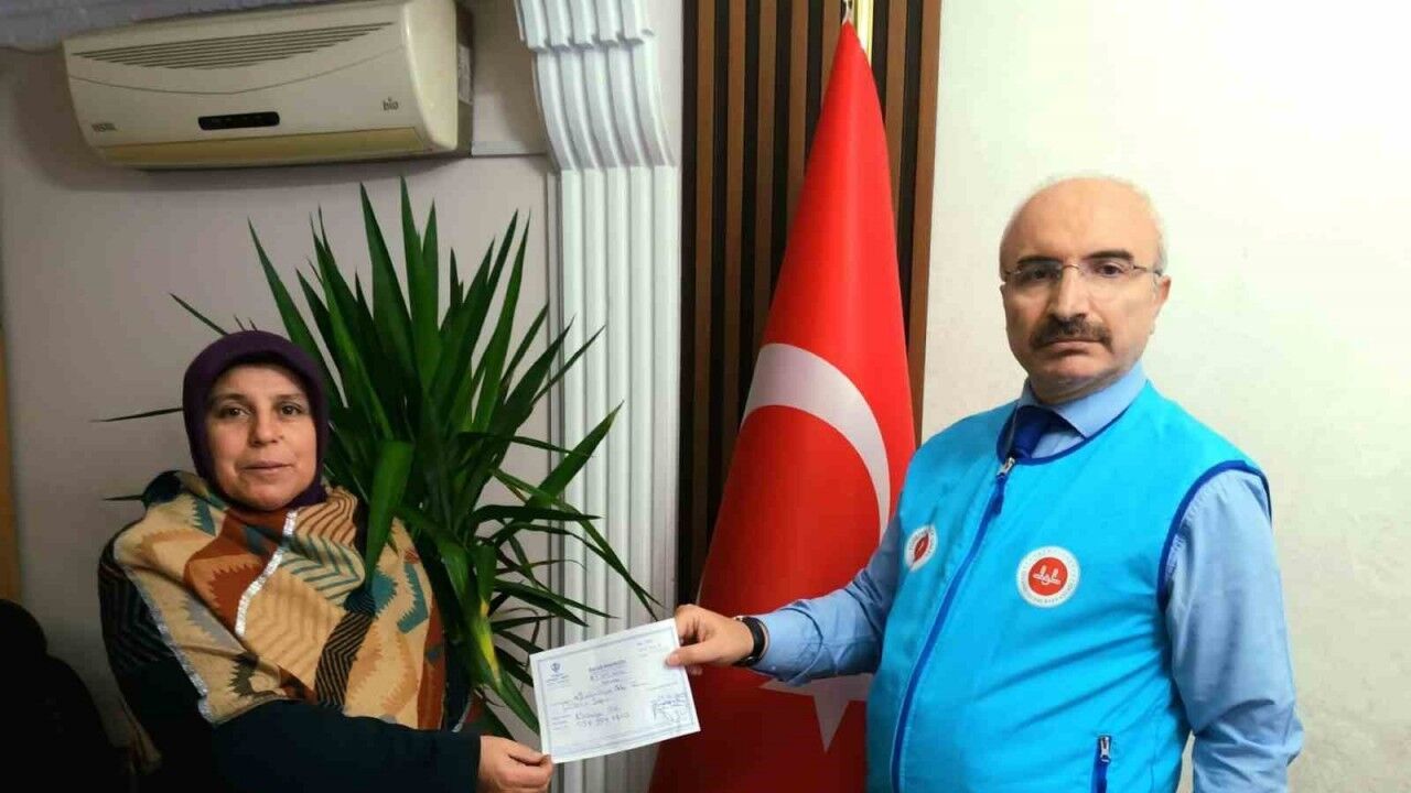 Kütahya’nın Gediz ilçesinde Nazmiye Işık isimli vatandaş Filistinli mazlumlar için topladığı bağış paralarını TDV Gediz Şubesine teslim etti.