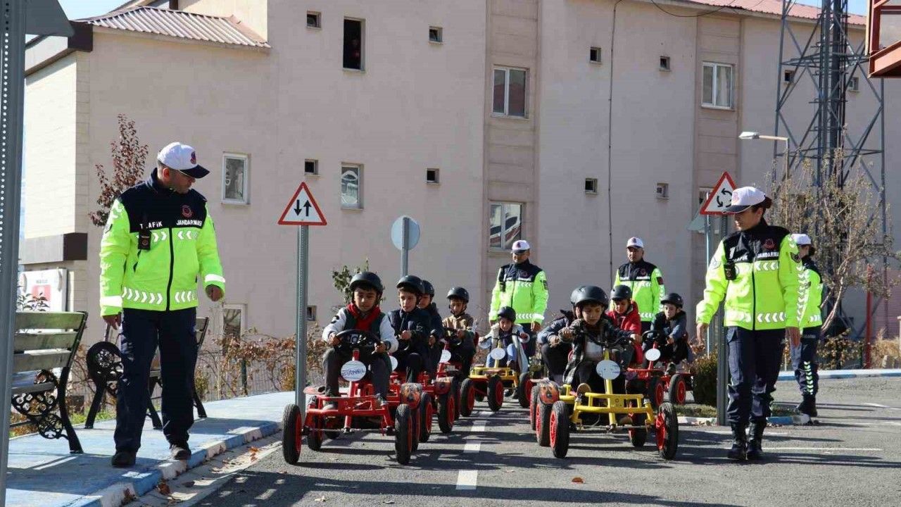 Hakkari İl Jandarma Komutanlığı Trafik Jandarması tarafından düzenlenen uygulamalı eğitimle miniklere trafik bilinci kazandırıldı.