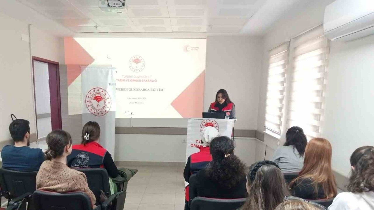 Çanakkale’de İl Tarım ve Orman Bölge Müdürlüğü ekiplerince tarımsal üretimi tehdit eden Kahverengi Kokarca (Halyomorpha halys) zararlısına karşı yürütülen çalışmalar aralıksız sürdürülüyor. Kahverengi kokarcanın halk sağlığına olan etkileri konusunda Gelibolu İlçe Sağlık Müdürlüğü personelleri İl Tarım ve Orman Bölge Müdürlüğü ekiplerince bilgilendirildi. Eğitimde; zararlının biyolojisi ve morfolojik özellikleri, kışlama alanlarında uygulanabilecek mücadele yöntemleri, canlı zararlı örneklerinin tanıtımı yapılarak katılımcılara bilgilendirici broşürler dağıtıldı.