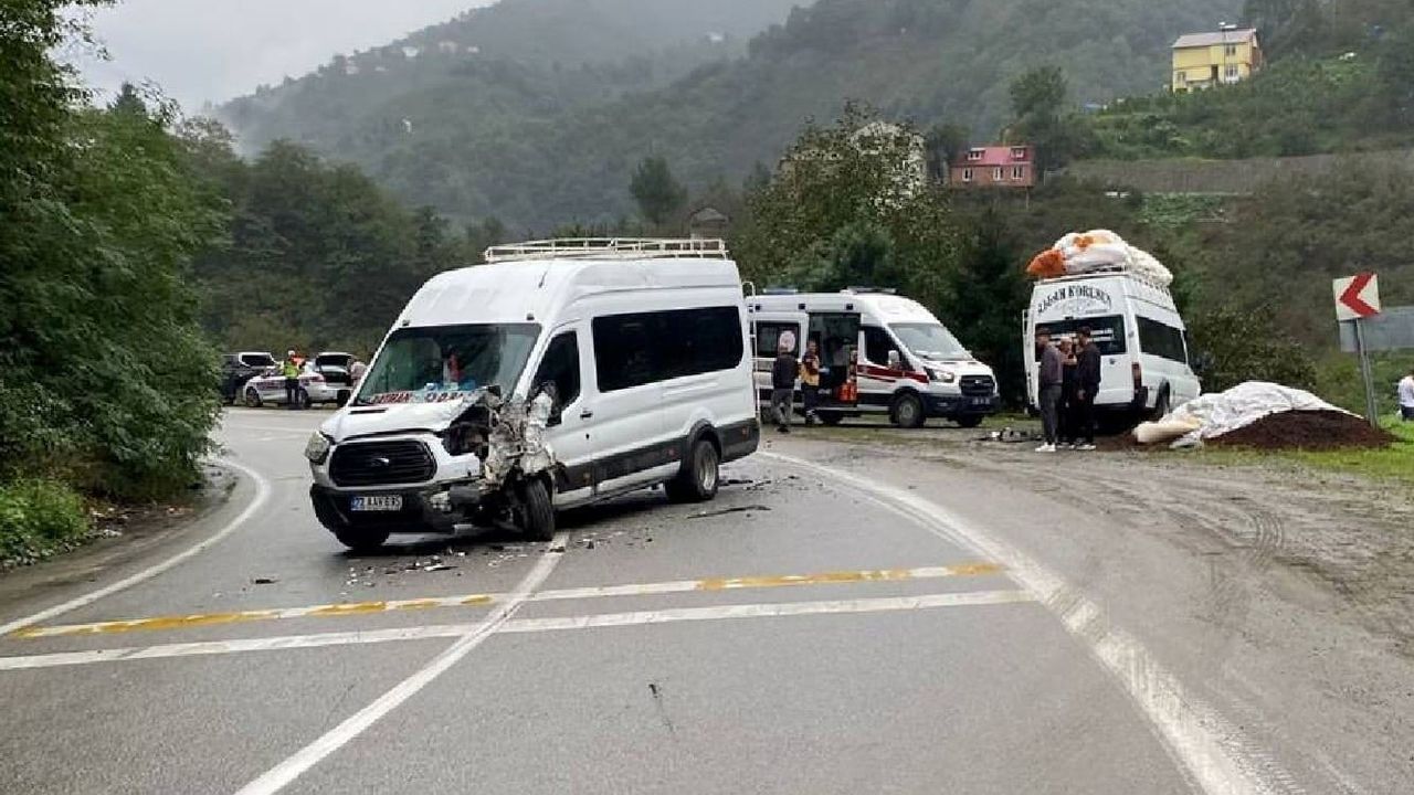 Hakan KABAHASANOĞLU/ TİREBOLU (Giresun), (DHA)- GİRESUN’un Tirebolu ilçesinde 2 minibüsün kafa kafaya çarpıştığı kazada, 10 tarım işçisi yaralandı.