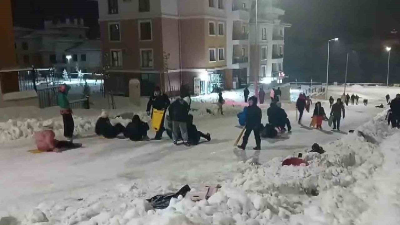 Karın tadını çıkarmak isteyen küçük-büyük her yaştan vatandaş soluğu dışarıda aldı. Profesyonel kızakların yanı sıra, evlerinden getirdikleri naylon poşetler, leğenler ve kendi imkanlarıyla yaptıkları kızaklarla yokuşlardan aşağı kayan çocuklar, dondurucu soğuğa aldırış etmeden saatlerce eğlendi.