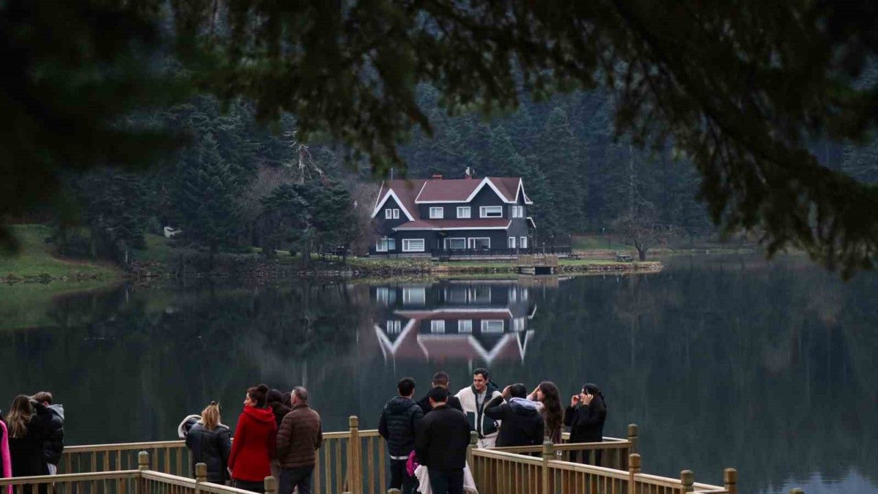 Bolu’nun doğa harikası Gölcük Tabiat Parkı, hafta sonunda ziyaretçi akınına uğradı. Gölün ortasında yer alan simge ev, gölün durgun suyunda yansımasıyla birlikte kartpostallık manzaralar oluşturdu.
