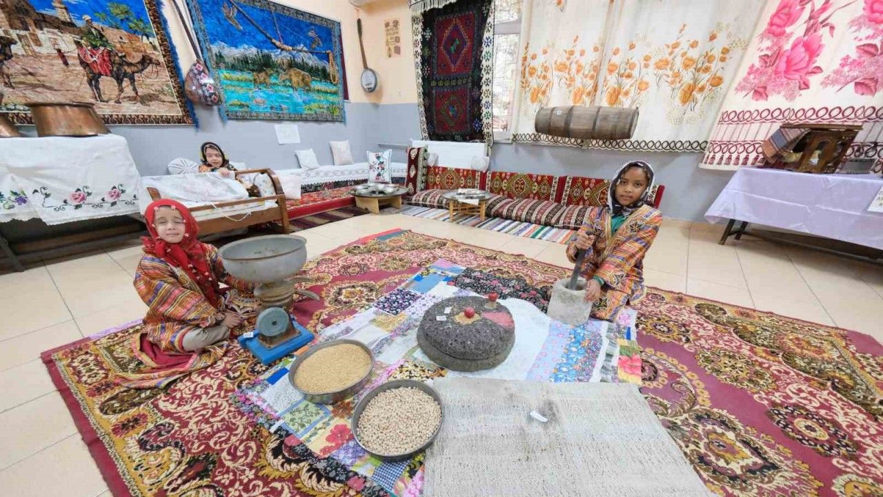Suçatı Ortaokulu’nda açılan sergide 100 yıllık eşyalar ve kültürel yaşam izleri ziyaretçileri geçmişe yolculuğa çıkardı.