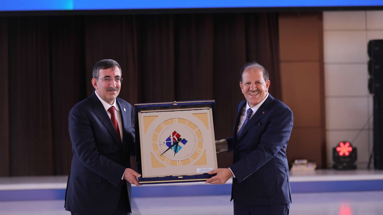 Konuşmaların ardından Hasan Kalyoncu Üniversitesi'nin 2024 - 2025 öğretim yılını dereceyle tamamlayan üniversite birincisi, ikincisi ve üçüncüsüne başarı belgeleri ve ödülleri Cumhurbaşkanı Yardımcısı Cevdet Yılmaz ve Gaziantep Eğitim ve Hizmet Vakfı Başkanı Cemal Kalyoncu tarafından takdim edildi.