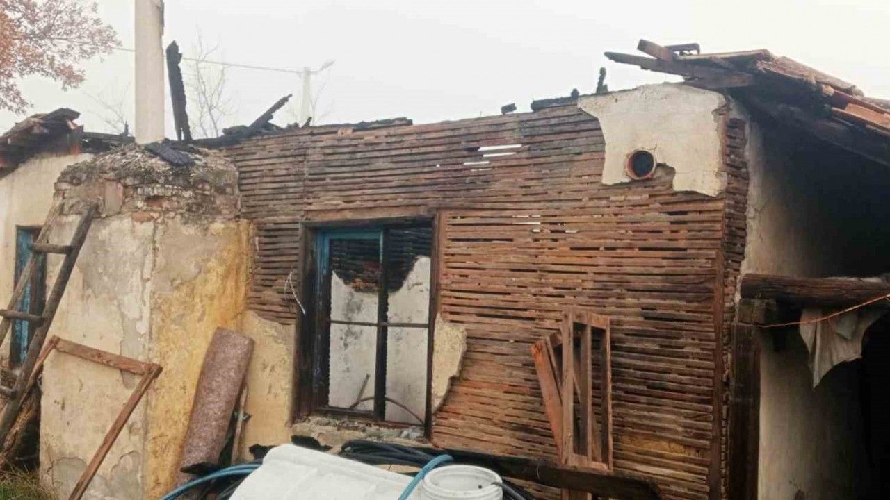 Yangın nedeniyle tek katlı deprem konutu kullanılmaz hale geldi.