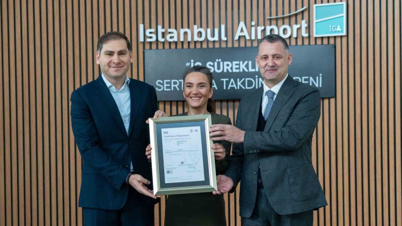 İstanbul Havalimanı, ‘havalimanı ve terminal işletme faaliyetleri’ kapsamında uluslararası geçerliliğe sahip ‘ISO 22301 İş Sürekliliği Yönetim Sistemi’ sertifikasını almaya hak kazandı. İstanbul Havalimanı’nda düzenlenen sertifika teslim törenine İGA İstanbul Havalimanı CEO’su Selahattin Bilgen ve İstanbul Havalimanı Mülki İdare Amiri Vali Mehmet İlker Haktankaçmaz ve diğer davetliler katıldı. Törende bir konuşma yapan İGA İstanbul Havalimanı CEO’su Selahattin Bilgen, "Bugün burada İGA İstanbul Havalimanı olarak, bizim için son derece önemli bir başarıyı hep birlikte kutlamak için bir araya gelmiş bulunuyoruz. Uluslararası iş sürekliliği yönetim standardı olan ISO 22301 İş Sürekliliği Yönetim Sistemi Sertifikasını almaya hak kazanmanın gururunu yaşadığımızı belirtmek isterim. Bu sertifika; havalimanı ve terminal işletme faaliyetlerimizi muhtemel kesintiler, acil durumlar ve kriz senaryolarına karşı en yüksek uluslararası standartlarda sürdürebilme kapasitemizin tescilidir. Aynı zamanda operasyonel dayanıklılığımızın, yolcularımıza kesintisiz hizmet sunma kararlılığımızın ve küresel ölçekte örnek gösterilen bir iş sürekliliği kültürü oluşturduğumuzun açık bir göstergesidir" dedi.