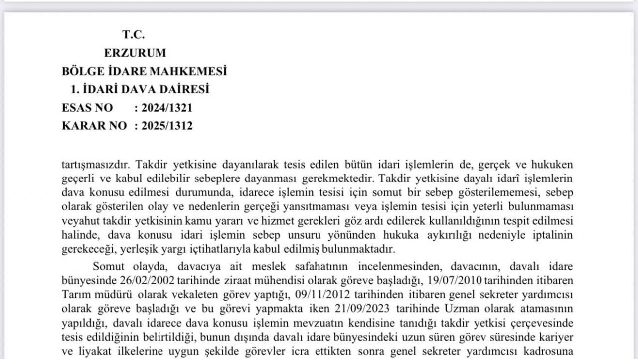 Edinilen bilgilere göre, Iğdır Valisi Ercan Turan tarafından İl Özel İdaresi Genel Sekreter Yardımcısı olarak görev yapan Mehmet Nuri Turan, 2023 yılında görevinden alındı. Kararın ardından Turan, işlemi yargıya taşıdı. Mahkeme, Mehmet Nuri Turan lehine karar vererek görevine iade edilmesi yönünde hüküm verdi. Kararın kesinleşmesi üzerine Turan, yeniden Genel Sekreter Yardımcılığı görevine başladı. Turan, Mehmet Nuri Turan’ı ikinci kez görevinden aldı.