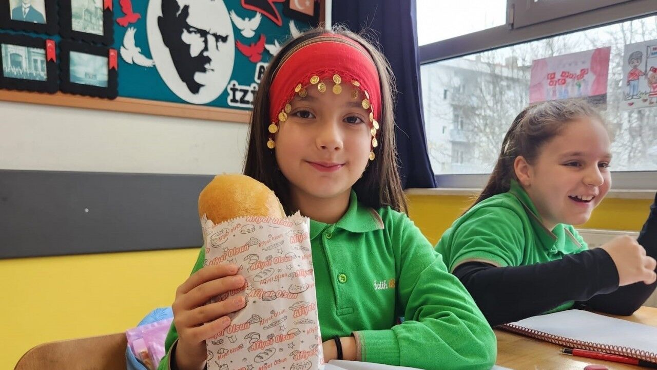 Fatih İlkokulu geleneksel hamsi gününde öğrenciler annelerinin hazırladığı hamsileri afiyetle yedi.