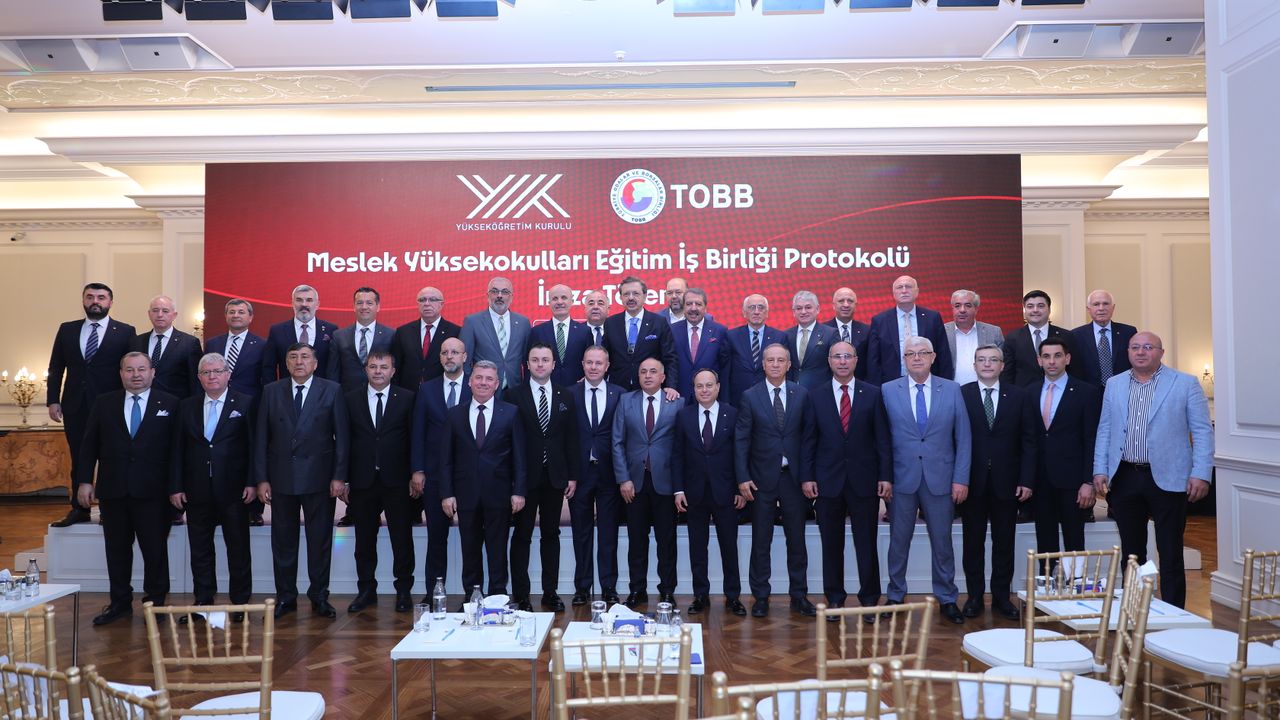 YÖK ve TOBB arasında, yükseköğretimin sektörle daha güçlü bağ kurmasını sağlayacak iş birliği protokolü imza törenine YÖK Başkanı Prof. Dr. Erol Özvar ve TOBB Başkanı Rifat Hisarcıklıoğlu ile bazı üniversitelerin rektörleri katıldı. TOBB Başkanı Rifat Hisarcıklıoğlu, YÖK ile TOBB arasında imzalanan Meslek Yüksekokulları Eğitim İş Birliği Protokolü ile Türkiye genelinde, 81 ilde, 388 meslek yüksekokulda, 367 oda ve borsanın aktif katkısıyla çok paydaşlı ve çok boyutlu bir dönüşüm süreci başlattıklarını vurgulayarak, "Üniversitelerimiz ve iş dünyamız tam bir iş birliği içinde ortak hedefe yürüyeceğiz. Meslek yüksekokullarımızın programları sektörün ihtiyaçlarına göre sürekli güncellenecek, bu süreçte sanayi ve ticaret temsilcileriyle yakın iş birliği yapılacak. Yani eğitim tarafı ile üretim tarafını aynı masada buluşturacağız" dedi.