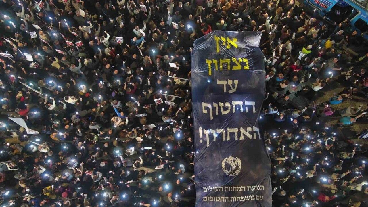 İsrail’in Gazze Şeridi’ne yönelik saldırıları 7 Ekim’den bu yana devam ederken, Gazze Şeridi’nde tutulan İsrailli esirlerin yakınları seslerini duyurabilmek için protestolarını sürdürüyor. Esirler ve Kayıp Kişilerin Aileleri Forumu tarafından organize edilen protesto için esir yakınları, İsrail’in başkenti Tel Aviv’de bulunan Kirya Askeri Üssü’nün önünde toplandı. Esirlerin serbest bırakılması çağrısında bulunan göstericiler, ellerinde esirlerin fotoğraflarını taşıdı. Göstericiler ayrıca, “Herkes dönene kadar durmayacağız” yazılı pankart açtı. Protesto sırasında Gazze Şeridi’ndeki insani ara kapsamında serbest bırakılan İsrailli bazı esirlerde konuşma yaptı.