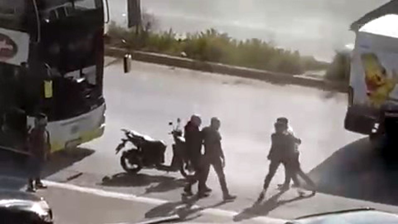 Tahtakale Mahallesi Ispartakule Bulvarı'nda aynı yönde ilerleyen İETT otobüsünün şoförü ile bir motosiklet sürücüsü arasında yol verme nedeniyle tartışma çıktı. İki sürücü aralarındaki tartışmanın büyümesiyle araçlarını yolda durdurup indi ve birbirine saldırmaya başladı. İkili bir süre yol ortasında kavga etti. Çevredekilerin araya girmesiyle kavga sonlandırılırken, o anları bir kişi cep telefonu kamerasıyla kaydetti.