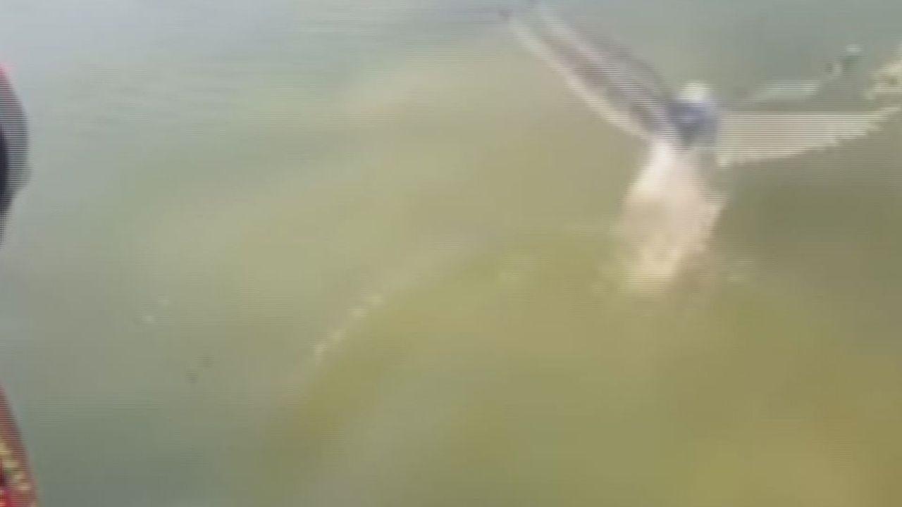 Uğur Samet AVCI/İSTANBUL,(DHA) - BAKIRKÖY'de bir gölette kanadına dolanan ip nedeniyle mahsur kalan martı, itfaiye ekipleri tarafından kurtarıldı.