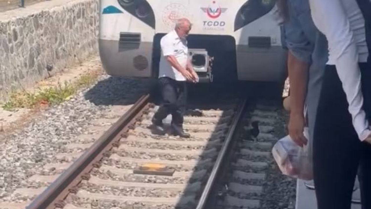 Olay, dün öğle saatlerinde Bakırköy Marmaray durağında yaşandı. Marmaray seferini yapan makinist, durağa yaklaştığı sırada rayların üzerindeki yavru kediyi fark etti. Bunun üzerine treni durduran makinist, raylara inerek kediyi aldı. Makinist kediyi durakta bekleyenlere teslim ederken, yolcular da alkışlayarak makiniste teşekkür etti. Makinist daha sonra trene binerek seferine devam etti. O anlar cep telefonu kamerasına yansıdı.