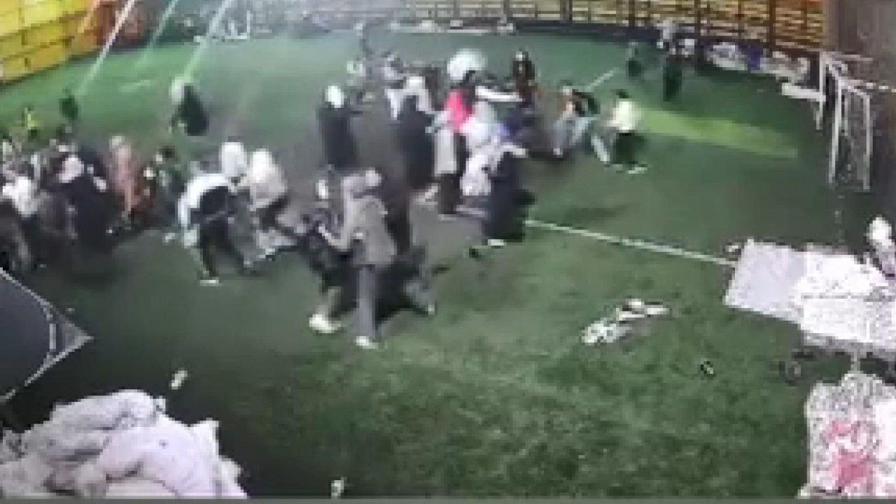Kavga sırasında öfkelenen aileler tekme ve yumruklarla birbirlerine saldırdı. Halı sahanın çeşitli noktalarında dakikalarca süren kavga sırasında kimi çocuklar kaçtı kimi çocuklar ise kavgayı ayırmaya çalıştı. Kavga ve futbol sahasının karıştığı anlar futbol sahasının güvenlik kamerasına saniye saniye yansıdı. (DHA)