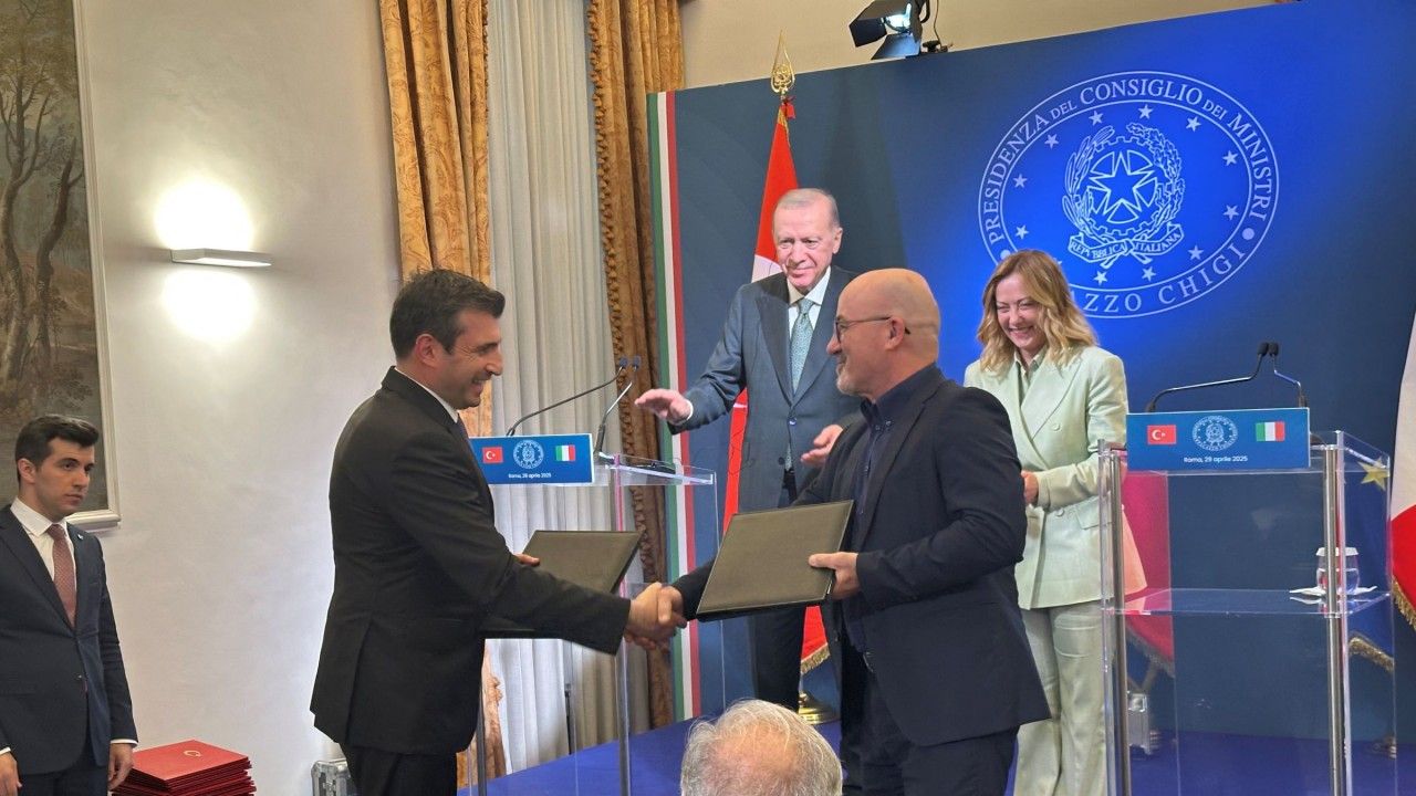 Cumhurbaşkanı Recep Tayyip Erdoğan ve İtalya Başbakanı Giorgia Meloni huzurunda gerçekleşen teati töreninde Mart ayında imzalanan İtalya’da ortak insansız hava araçları geliştirme ve üretimi ile yüksek teknoloji alanında iş birliğini öngören anlaşmanın belgeleri resmi olarak değiştirildi. Törende 6 Mart 2025 tarihinde Roma'da imzalanan ve iki şirketin yüksek teknoloji alanındaki kabiliyetlerini birleştirmeyi hedefleyen mutabakat zaptına ilişkin anlaşma belgeleri, Baykar Yönetim Kurulu Başkanı Selçuk Bayraktar ile Leonardo CEO’su ve Genel Müdürü Roberto Cingolani tarafından karşılıklı olarak teslim edildi.