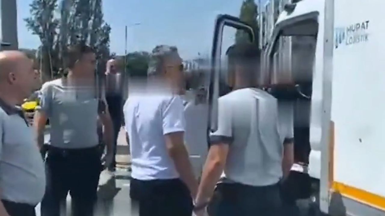 İSTANBUL, (DHA) - EYÜPSULTAN'da trafikte tartıştığı sürücünün önünü keserek hakaret eden ve aracın üstüne çıkıp tekme atan kamyonet şoförü S.Y. gözaltına alındı. İçişleri Bakanı Ali Yerlikaya, sosyal medya hesabından yaptığı açıklamada, şüphelinin 'Mala Zarar Verme, Tehdit ve Hakaret' suçlarından adliyeye sevk edileceğini duyurdu.