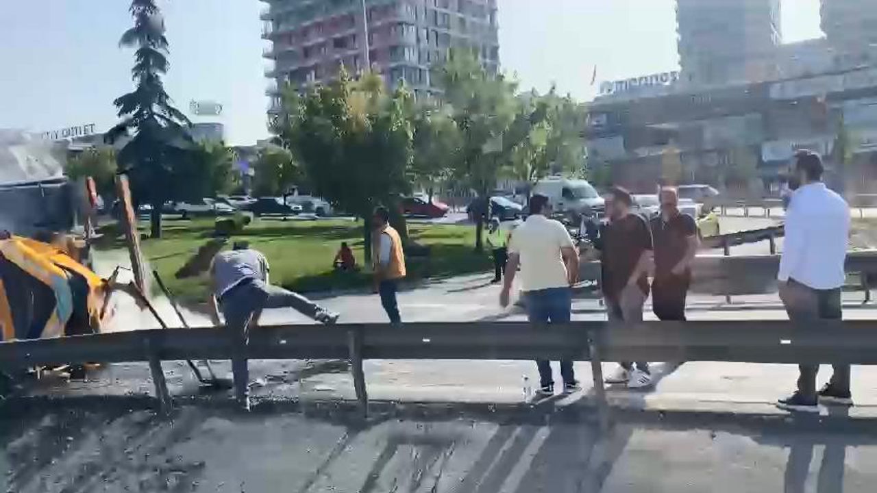 Gülseren KARAPINAR - Didem ERGİN - Emir Efe BENLİOĞLU / İSTANBUL, (DHA ) - KÜÇÜKÇEKMECE'de Sefaköy kavşağından Basın Ekspres'e inen yan yolda beton mikseri devriidi. Kaza nedeniyle bölgede trafik yoğunluğu oluştu.Sürücüler yan yolda ilerlemekte güçlük çekti.