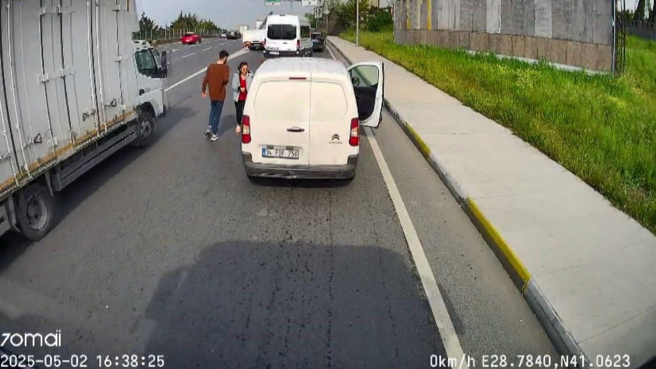 Kaza, 2 Mayıs'ta saat 17.00 sıralarında Halkalı- İkitelli Bağlantı Yolu'nda meydana geldi. İddiaya göre, Ankara istikametinde seyir halinde olan TIR ve hafif ticari araç trafiğin yoğunlaştığı noktada yavaşladı. Trafiğin durma noktasına geldiği sırada iki şoför de aracını durdurdu. Bu sırada hafif ticari aracın sürücüsü fren yerine debriyaja basınca geri geri kayarak arkasındaki TIR'a çarptı. Öte yandan kazanın ardından hafif ticari aracın şoför koltuğuna yolcu koltuğunda oturan kadının geçmesi ise dikkat çekti. Yaşanan kaza anı ise TIR'ın araç içi kamerasına yansıdı.