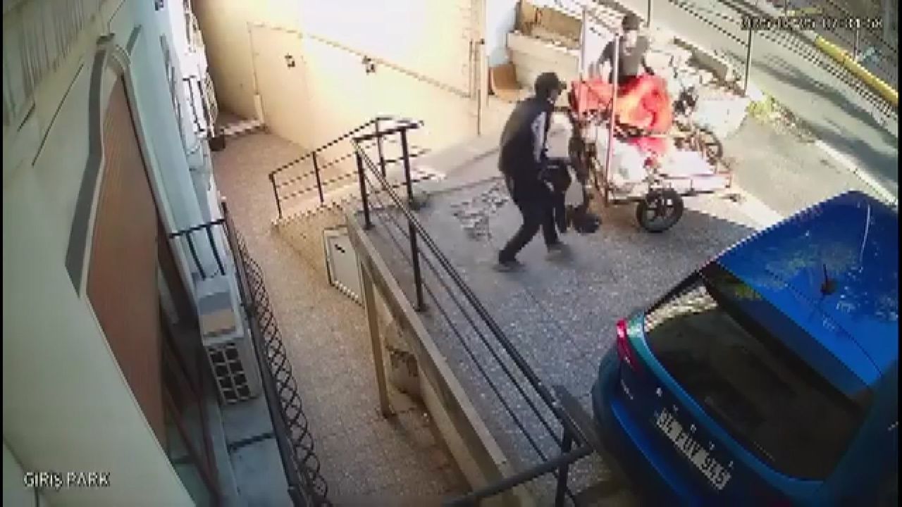 Olay, Nişantaşı’nda bir sokakta sabah saatlerinde meydana geldi. Edinilen bilgiye göre, kullandıkları çek çek arabayla sokağa gelen 2 kişi, önce çevreyi kontrol etti. Sonra skuterin bağlı olduğu apartmanın girişine gelen şüphelilerden 1 kişi eline demir kesme makası aldı. Diğer şüpheli araçta hazır beklerken diğeri demir kesme makasıyla skuterin zincirini saniyeler içinde kesti.Çaldıkları skuteri araca yükleyip ardından da üstünü araçtaki halıyla örten şüpheliler hızla olay yerinden kaçtı. O anlar çevredeki bir iş yerinin güvenlik kamerası tarafından kaydedildi. (DHA)
