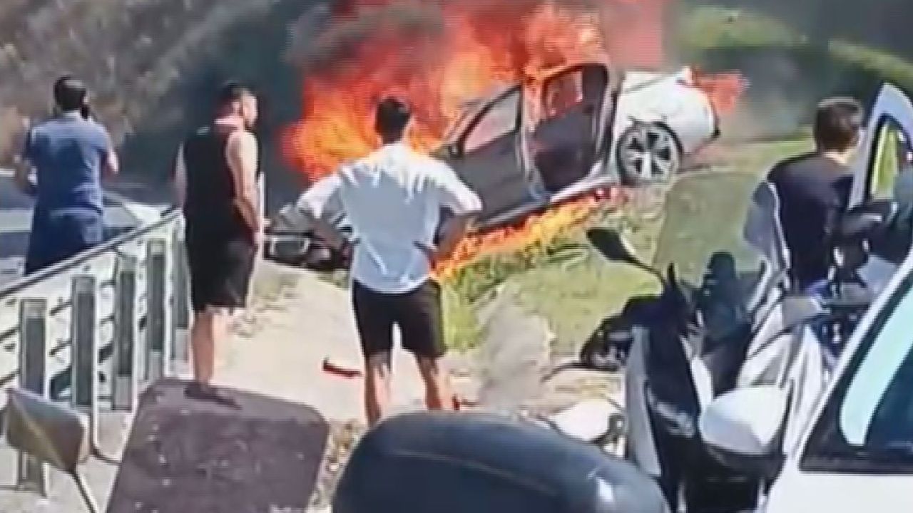 Kaza saat 16.00 sıralarında TEM Otoyolu Ümraniye geçişindeki Çamlık Kavşağı'nda meydana geldi. Sürücüsünün direksiyon hakimiyetini kaybetmesi sebebiyle kaza yapan otomobil, yol kenarındaki çimlerin üzerine savruldu. Kaza sonrasında otomobilin motor kısmında yangın çıktı. Sürücü kendi imkanlarıyla araçtan çıkarken, yangın kısa sürede otomobilin tamamına yayıldı. Alev alev yanan otomobil itfaiyenin müdahalesi ile söndürüldü. (DHA)