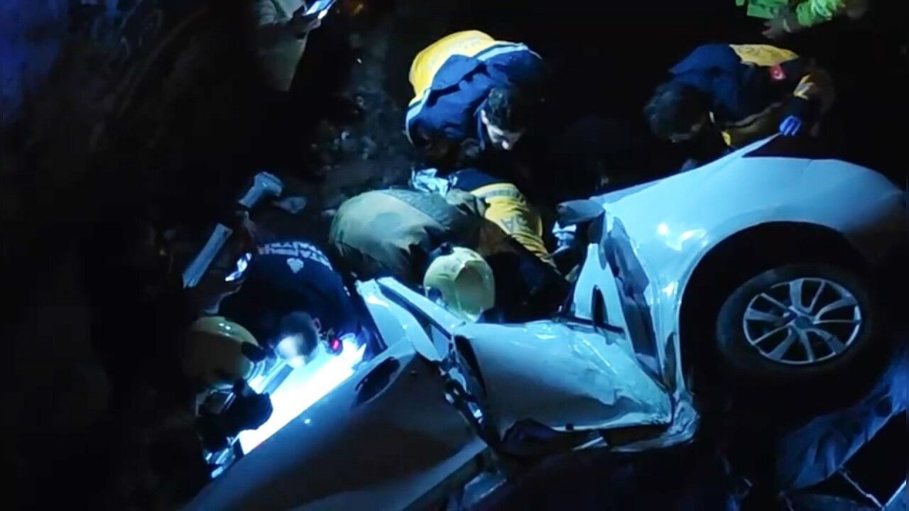 İhbar üzerine olay yerine polis, itfaiye ve sağlık ekipleri sevk edildi. Kaza sonrası otomobilde sıkışan sürücü Eren B., itfaiye ekiplerinin uzun süren çalışmalarından sonra sıkıştığı yerden çıkarıldı. Eren B. ambulansla hastaneye kaldırılırken, sağlık durumunun iyi olduğu öğrenildi. Polis kaza ile ilgili inceleme başlattı. (DHA)