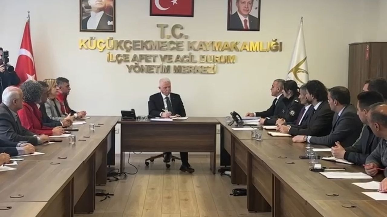 İstanbul'da meydana gelen 6.2 büyüklüğündeki depremin ardından Silivri, Büyükçekmece, Beylikdüzü, Avcılar ve Küçükçekmece'deki afet koordinasyon merkezlerinde toplantı düzenlendi. Vali Gül başkanlığında gerçekleştirilen toplantılarda Gül, ilçe kriz merkezinde yürütülen çalışmalara ilişkin bilgi aldı. (DHA)