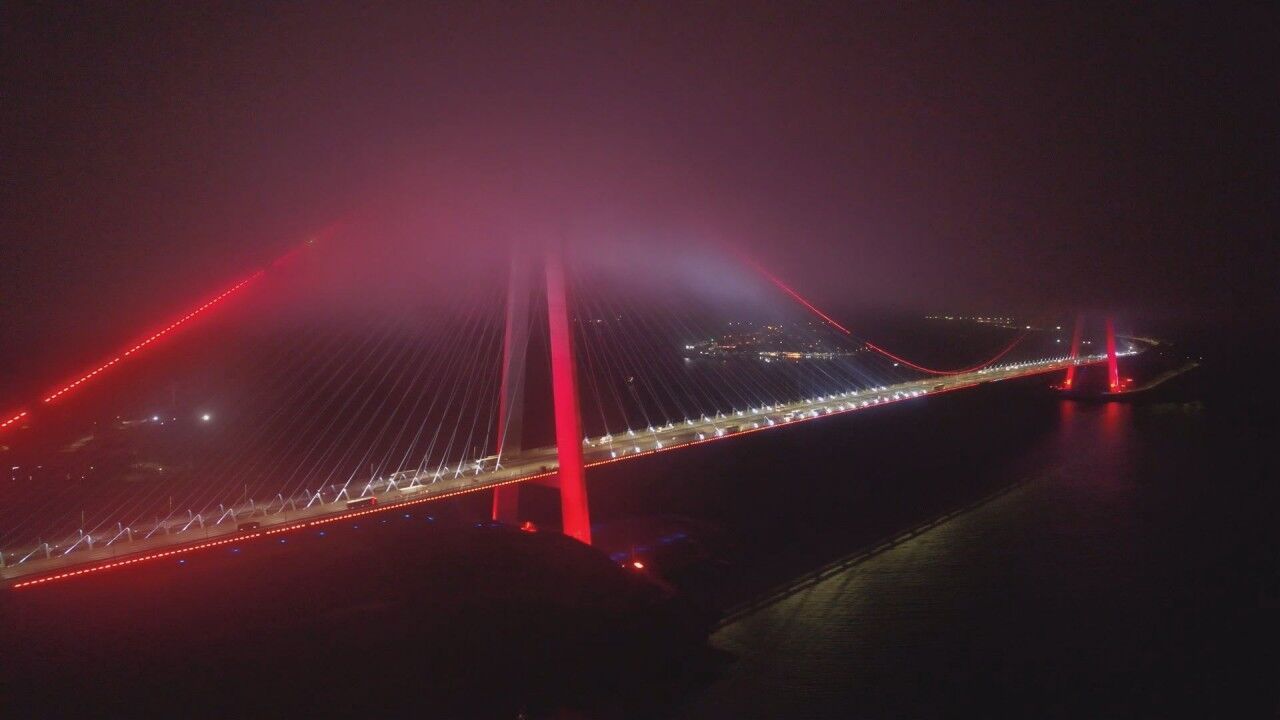 Özcan KILIÇ/İSTANBUL,(DHA)- İSTANBUL’da akşam saatlerinde etkili olan sis, Yavuz Sultan Selim Köprüsü’nün bir kısmını kapladı. Köprünün ışıklandırması ile ortaya çıkan eşsiz manzara, dron ile havadan görüntülendi.