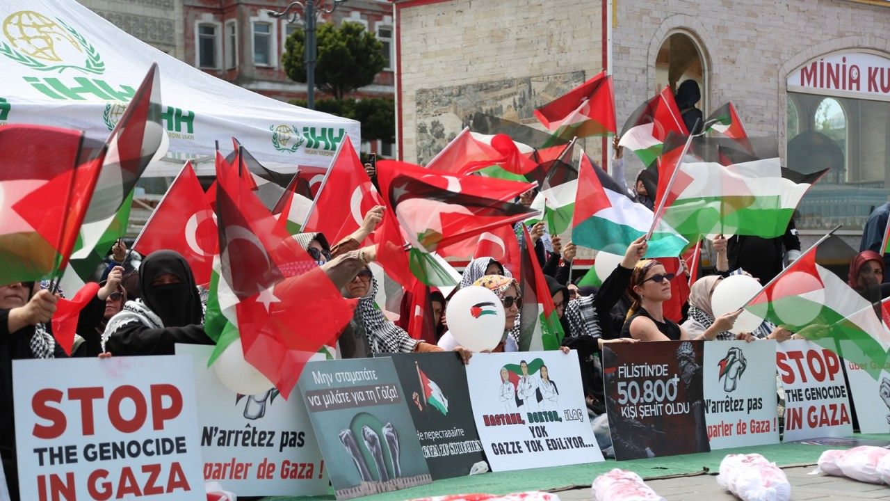 İHH İstanbul Kadın Birimi tarafından Gazze’ye destek mesajı vermek amacıyla Eminönü Meydanı’nda oturma eylemi düzenleniyor. 9-10-11 Mayıs tarihlerinde sabah saat 10.00 ile 21.00 saatleri arasında sürecek eylemin ilk gününde basın açıklaması yapıldı.