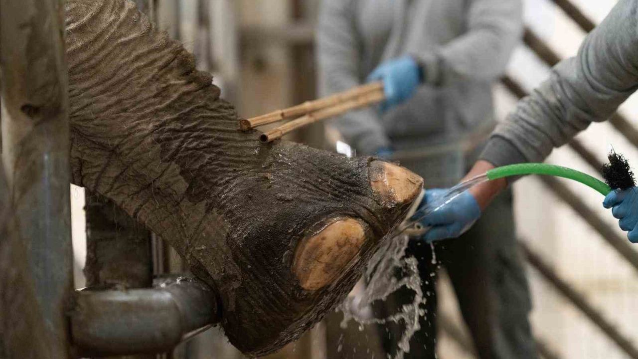 Nesli tükenme tehdidi altındaki birçok canlı türüne ev sahipliği yapan İzmir Doğal Yaşam Parkı'nda bulunan Asya filleri, uzman personel tarafından haftada iki kez ayak bakımına alınıyor. Filler için hayati önem taşıyan uygulama sonrası dev cüsseli filler, ziyaretçileri karşılamaya devam ediyor.