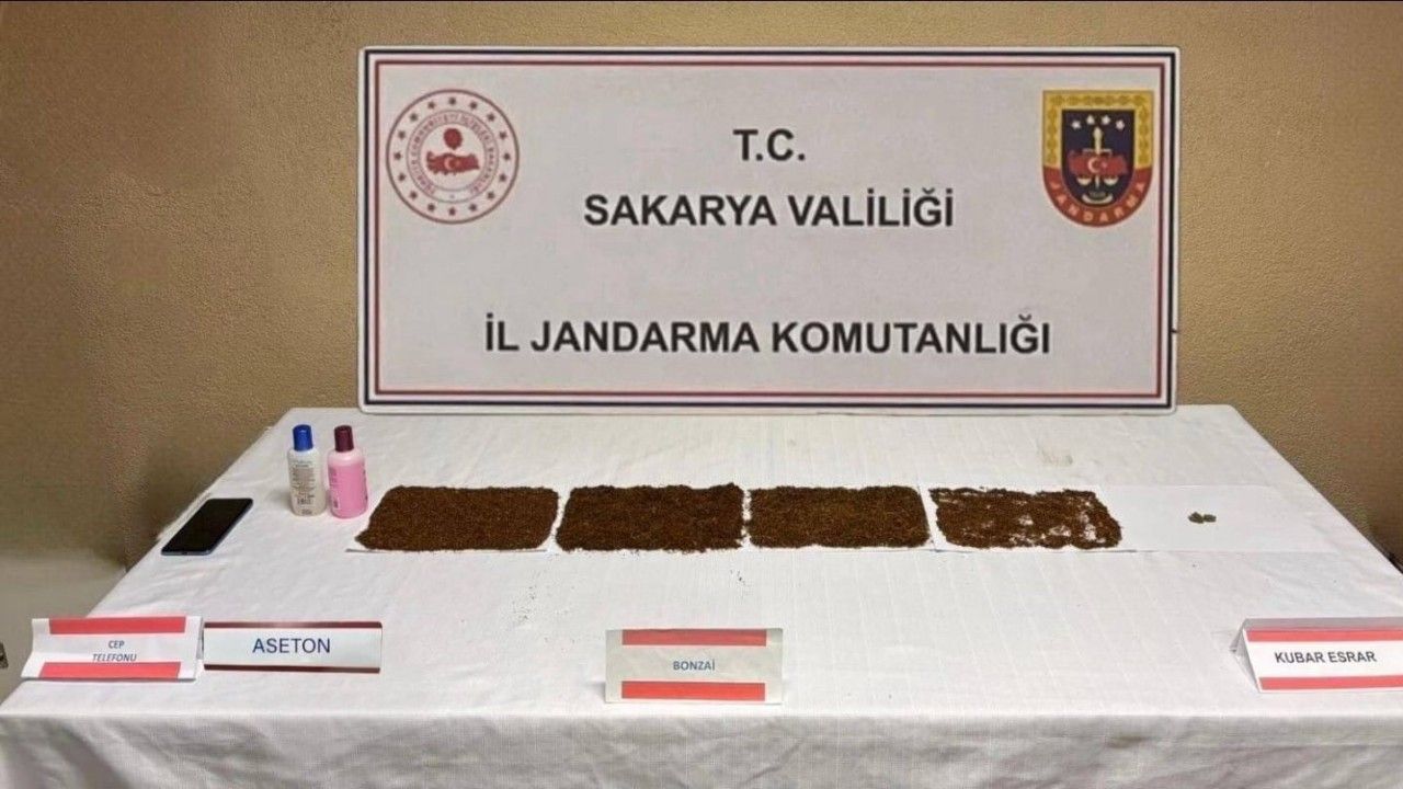 Sakarya İl Jandarma Komutanlığı, sorumluluk bölgesinde uyuşturucuya geçit vermiyor. Bu çerçevede Serdivan ilçesinde yapılan operasyonda S.S. (43) isimli şüpheli gözaltına alındı. Yapılan aramada, 4 ayrı parça halinde toplam 520 gram bonzai maddesi, 2 gram kubar esrar maddesi, 2 adet sentetik kannabinoit yapımında kullanılan aseton ve 1 adet cep telefonu ele geçirildi.