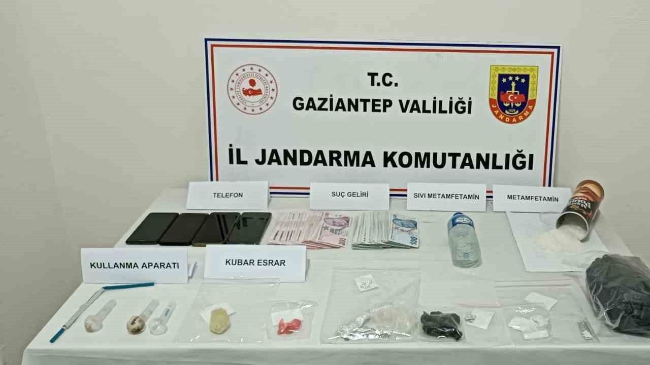 Yapılan aramalarda ise 1 kilo 50 gram metamfetamin, 120 gram sıvı metamfetamin, 15 gram kubar esrar, 44 bin 885 TL suç geliri para, 4 adet uyuşturucu kullanma aparatı, 4 adet cep telefonu ve 2 adet uyuşturucu naklinde kullanılan araç ele geçirildi.