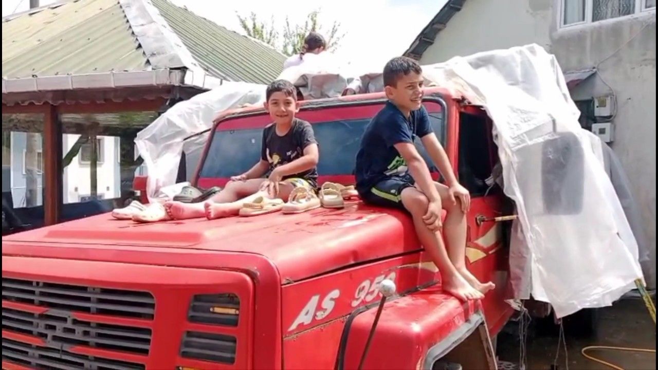 Adem AKATİN/ARDEŞEN (Rize), (DHA)- RİZE'nin Ardeşen ilçesinde Hızır Sofuoğlu, denize gitmek isteyen çocukları için kamyonun kasasını brandayla su geçirmez hale getirerek havuza dönüştürdü. Çocuklar, kamyon kasasında yüzerek doyasıya eğlendi.