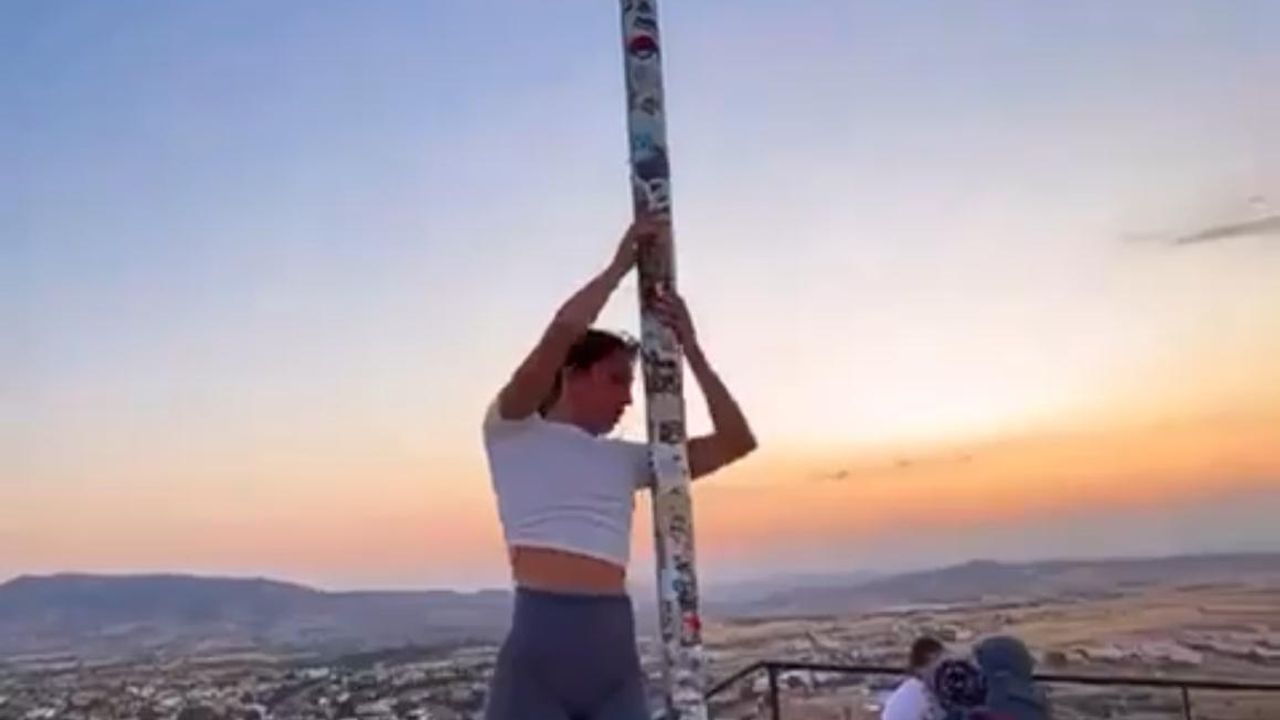 Ahmet KORKMAZER/NEVŞEHİR, (DHA)- TÜRKİYE'nin önemli turizm merkezlerinden Kapadokya’nın Uçhisar beldesindeki tarihi kaledeki Türk Bayrağı direğinde dans gösterisi yapan yabancı uyruklu kadın turist hakkında soruşturma başlatıldı.