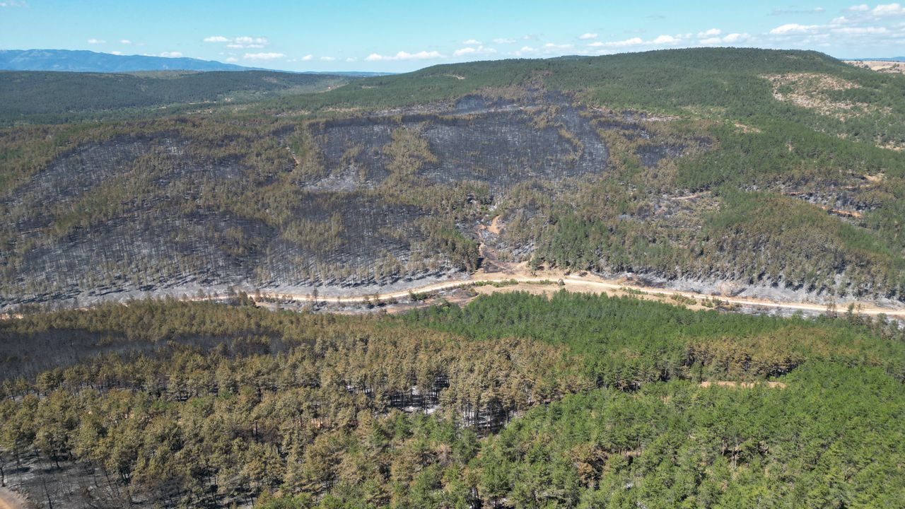 Pazar günü Eflani ilçesi Saraycık köyü yakınlarında etkili olan yangın gece saatlerinde kontrol altına alındı. Ekipler, bölgede soğutma çalışmasını sürdürüyor. Yangın sonrasında kızılçam ve karaçam ağaçlarının yanmış görüntüsü dronla görüntülendi. Yangının sıçradığı Harmancık köyü yakınlarındaki ormanda ise söndürme çalışmaları sürüyor. (DHA)