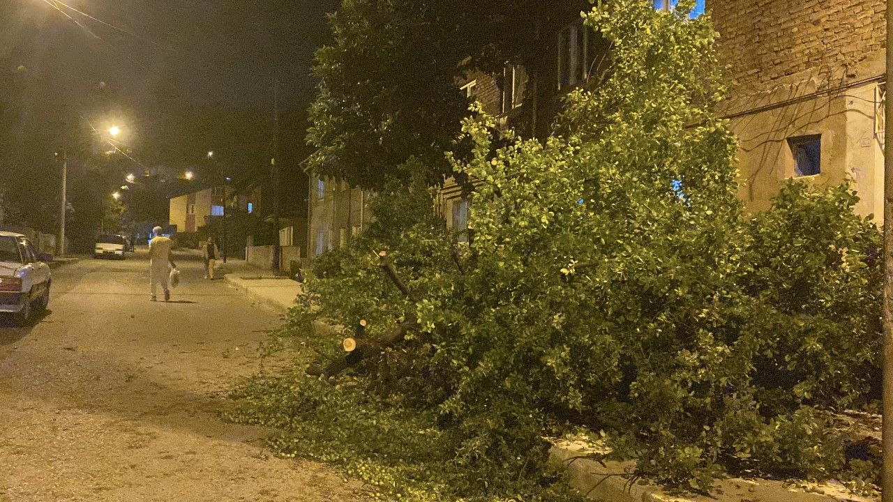 Karabük'te, akşam saatlerinde sağanak ve fırtına etkili oldu. Fırtına nedeniyle Atatürk Mahallesi Akıncılar Caddesi’nde bir ağaç yola devrildi. Şirinevler Mahallesi Peyami Safa Caddesi'nde ise şiddetli fırtına sonrası apartmanların çatılarından parçalar yola uçtu. Fırtına bir süre sonra etkisini yitirdi. (DHA)