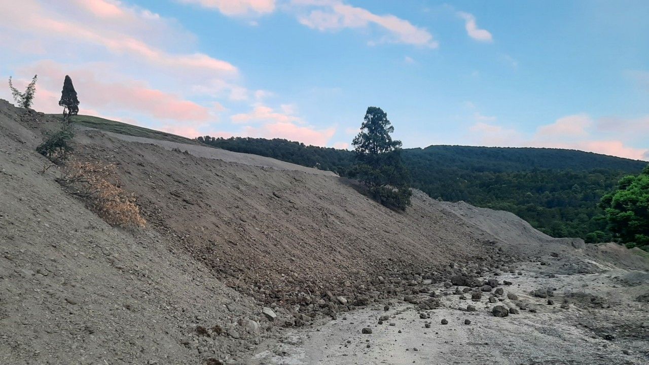 Murat ÖZELCİ/ KARABÜK, (DHA)- KARABÜK’te toprak kaymasının ardından yola inen kaya parçaları nedeniyle köy yolu ulaşıma kapandı.