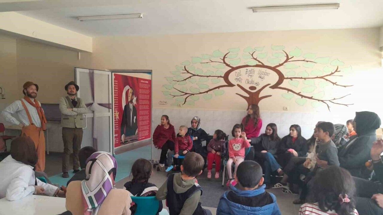 Konya’nın Karapınar ilçesinde, Konya Büyükşehir Belediyesi tarafından Medeniyet Okulu projesi çerçevesinde hazırlanan "Çat Kapı Sınıf Tiyatrosu" öğrencilerle buluştu.