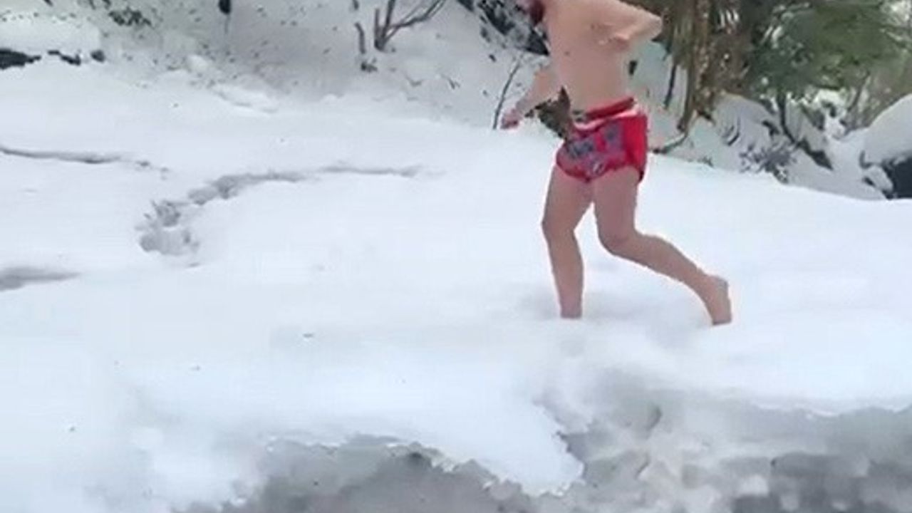 Düzce'de kar etkili olurken, bazı vatandaşlar karın tadını çıkarmaya devam ediyor. Düzceli sosyal medya fenomeni ve Muaythai antrenörü Muhammed Bişgin de Aydınpınar Şelalesi Tabiat Parkı'na giderek, sadece şortla karın içinde gezdi ve Aydınpınar Şelalesi altında antrenman yaptı. Bişgin'in karda ve buz gibi sudaki hareketleri takipçilerin beğenisini topladı.