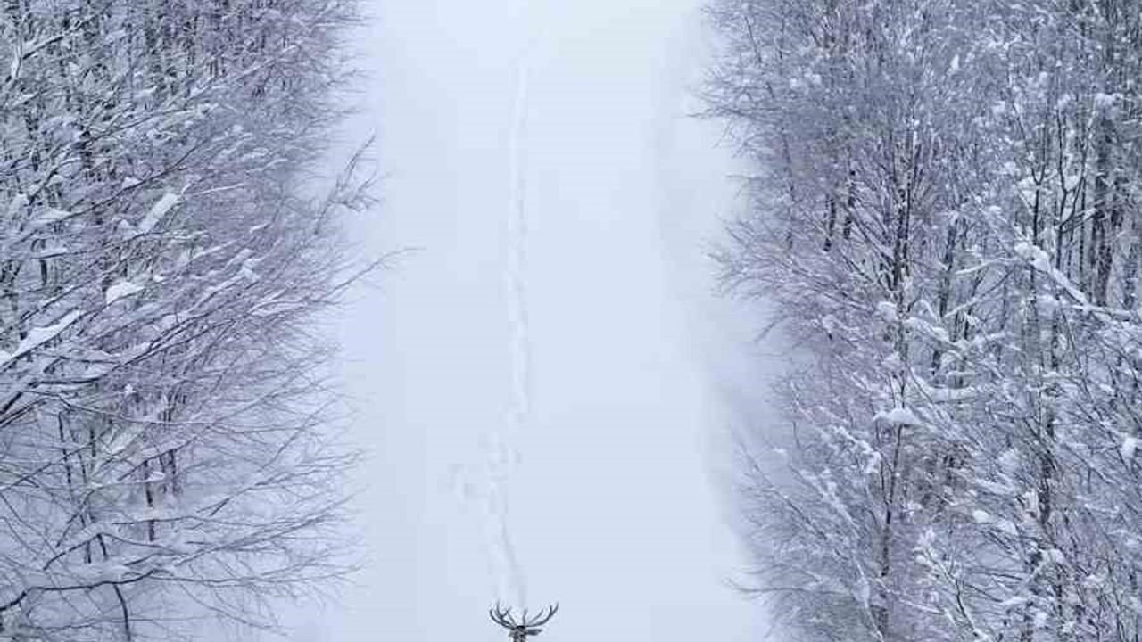 Samanlı Dağları'nın zirvesinde yer alan Kuzuyayla Tabiat Parkı'nda yürüyen bir kızıl geyik havadan görüntülendi. Karların arasında asil duruşuyla ilerleyen geyiğin oluşturduğu görüntü, izleyenleri mest etti.