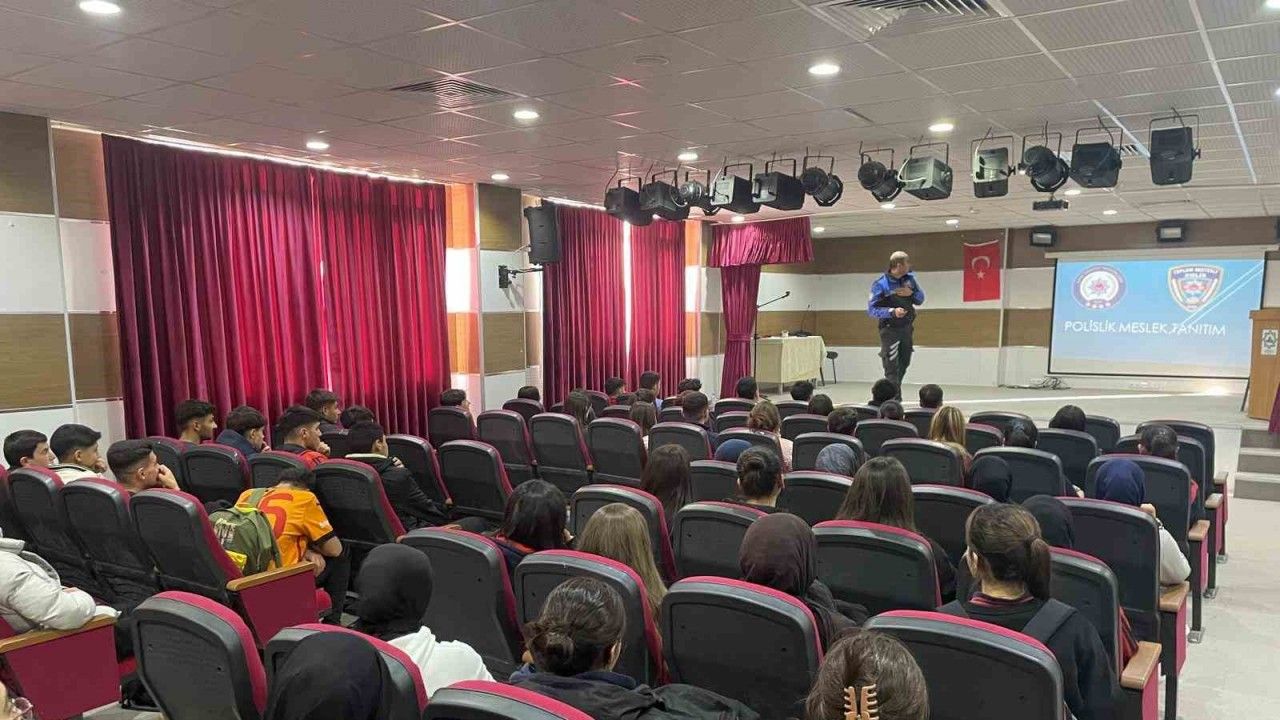 Toplum Destekli Polislik Şube Müdürlüğü’nce Selahaddin Eyyubi Anadolu İmam Hatip Lisesi ziyaret edildi. Ziyarette öğrencilere polis olabilmek için gerekli şartlar, alınan eğitimler, günlük çalışma düzeni ve teknolojinin emniyet hizmetlerindeki yeri anlatıldı. Ayrıca trafik, asayiş, toplum destekli polislik gibi birimlerin görevleri örneklerle aktarıldı.