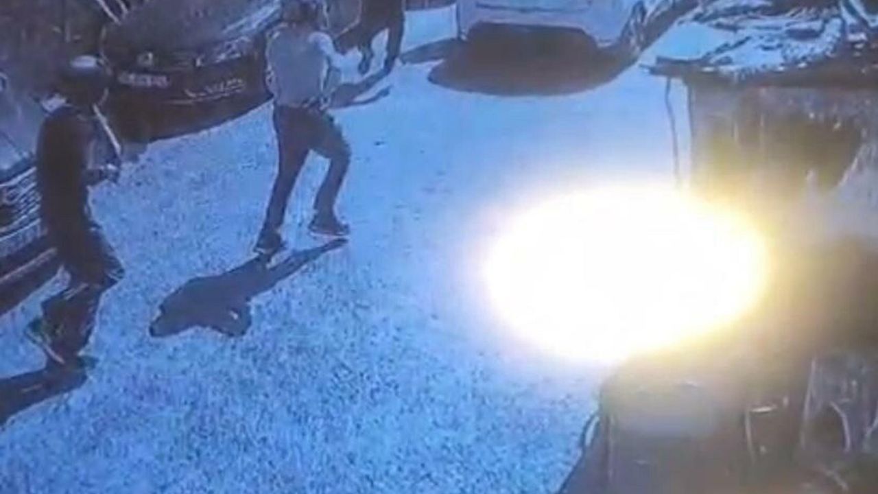 Olay anı güvenlik kamerasına yansıdı. Görüntülerde, şüphelilerin beyaz bir otomobille kafalarında kaskla indikleri ve soygun yaptıktan sonra yine aynı arabayla kafalarında kasklarla kaçtıkları görülüyor.