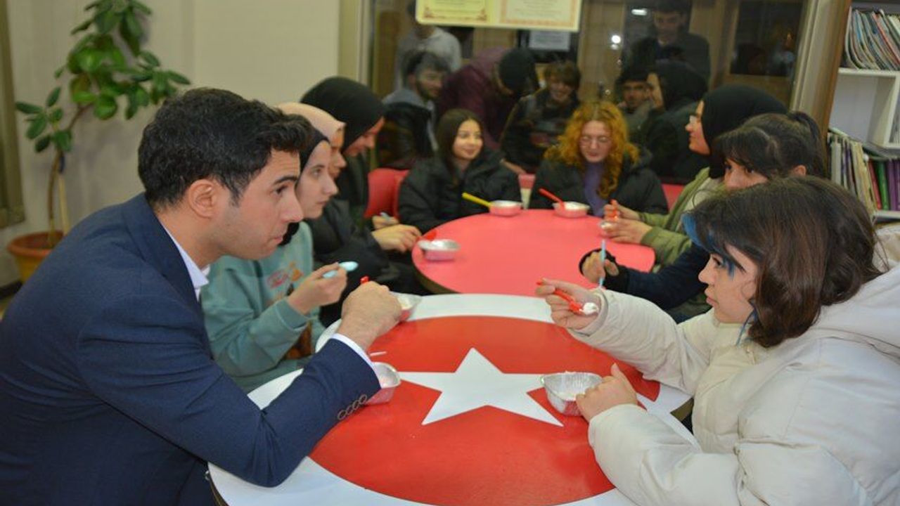 Kaymakam Muhammet Güzel'in isteği üzerine Şehit Ahmet Çamur Anadolu İmam Hatip Lisesinde eğitim gören depremzede öğrenciler için memleketlerinin yöresel dondurması yapıldı.