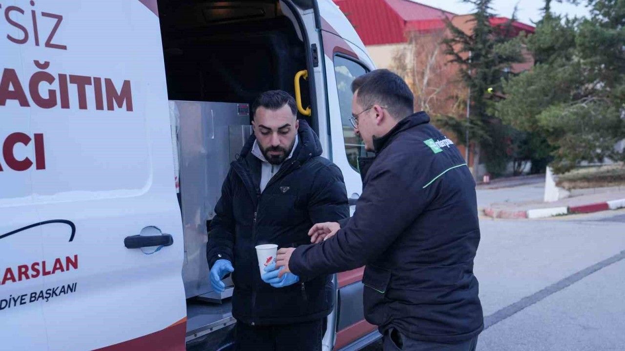 Sıcak çorba ikramından memnun kalan vatandaşlar, Özarslan ve ekibine teşekkür etti.