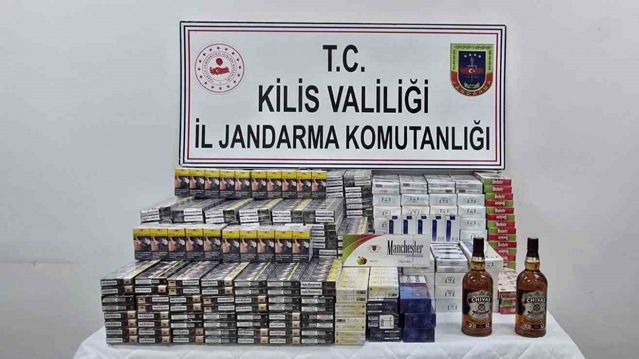 Kilis Kocabeyli yol kontrol noktasında durdurulan H.Y. isimli şahsın sevk ve idaresindeki araçta arama yapıldı. Yapılan aramalarda, 2 bin 420 paket çeşitli markalarda kaçak sigara ile 2 litre kaçak alkol ele geçirildi.