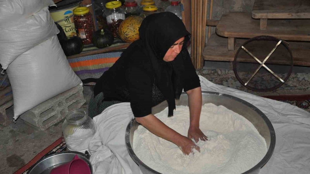 Köy sakinlerinden Rukiye Yavuz, kış boyunca tüketecekleri yufka ekmeğini komşularıyla birlikte hazırladı. Değirmenden aldığı unu önce kendi elleriyle yoğuran Yavuz, ardından köyde "tepeleme" olarak bilinen geleneksel yoğurma tekniğini kullanarak hamuru kıvama getirdi. Yufkalar açılarak sac üzerinde tek tek pişirildi.