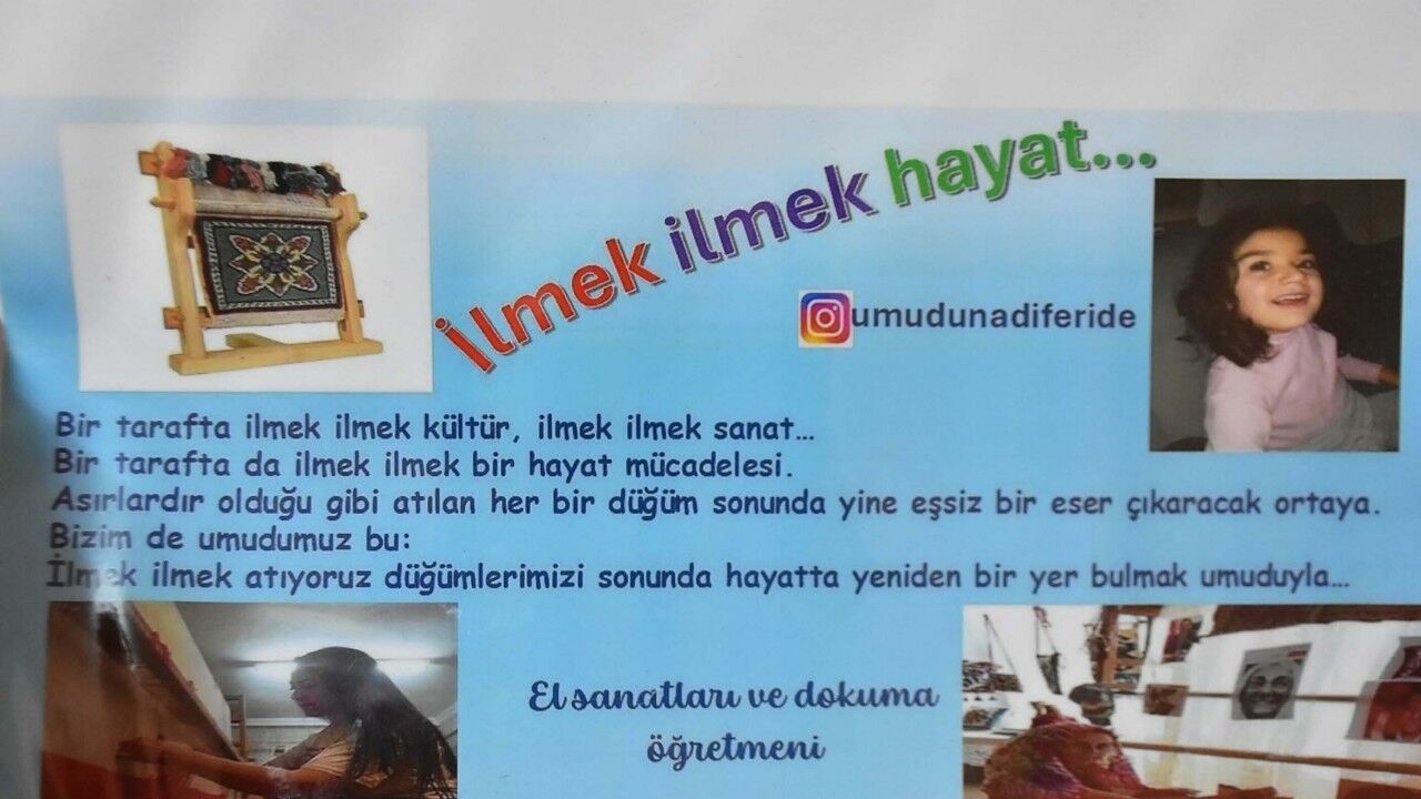 "Buradaki öğretmenime Feride'nin sürecini anlattım. Bana, 'Ürettiklerini satışa sunabilirsin' dedi. Dokuma işi unutulmaya yüz tutmuş bir kültür. Ben de öğrenmeye başladım. Burada hem dertlerimizi hem umutlarımızı dokuyoruz. Bir şeyler ortaya çıkarıyoruz. Kızımızın tedavi masraflarını yeterince karşılayabilmek için mücadele ediyoruz. Umutluyuz, kızıma bu anlamda da destek olabileceğimi düşünüyorum."
