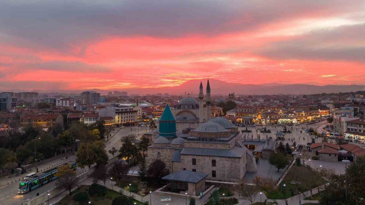 Konya’nın tarihi ve kültürel mekanları gün batımında kartpostallık manzaralar oluşturdu.
