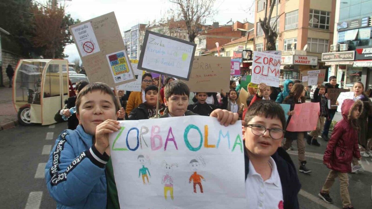 Konya’nın Beyşehir ilçesinde öğrenciler, son dönemde artan akran zorbalığına dikkat çekmek ve farkındalık oluşturmak amacıyla düzenlenen yürüyüş etkinliğine katıldı.