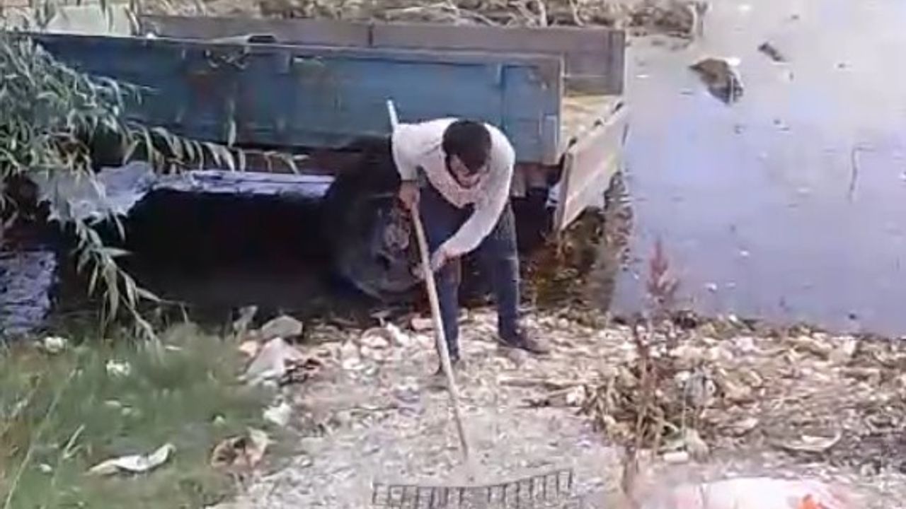 ‘Sakin şehir’ ünvanlı Göynük ilçesindeki Çubuk Gölü çöple kaplandı. Gölün yakınındaki Çubuk köyünün muhtarı Yüksel Sağıt ile köyde yaşayan Mustafa Çelik, gölde biriken çöpleri topladı. Sağıt, traktörünü göle yanaştırarak plastik atıklar, cam şişeler ve evsel çöpleri römorka doldurdu. Çalışma kapsamında göl yüzeyi ile kıyı şeridi temizlendi. Toplanan atıklar, bir römorku doldurdu. (DHA)